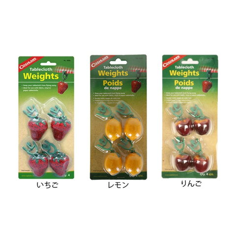 メーカー希望小売価格はメーカーカタログに基づいて掲載していますCOGHLANS/コフラン/テーブルクロスウェイト 4個入サイズ:8×3.5×3.5cm重量:1個あたり39gいちご、レモン、りんご テーブルクロスやシート等を風で飛ばないようにする可愛らしい重りです。