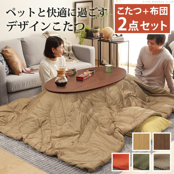こたつ 折りたたみ 北欧 フラットヒーター デザイン折れ脚こたつ〔アロー〕 +ペットの毛や汚れに強いこたつ布団 2点セット こたつテーブル リビングテーブル 台形 楕円形 ウォールナット ペット用 アウトドア用 木製 おしゃれ【送料込・2020-21こたつ】