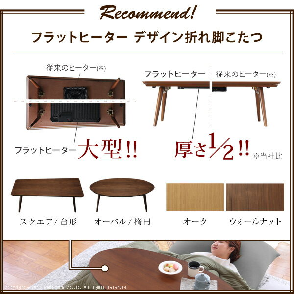 送料無料 こたつ 折りたたみ 北欧 フラットヒーター デザイン折れ脚こたつ〔アロー〕 +ペットの毛や汚れに強いこたつ布団 2点セット こたつテーブル リビングテーブル 台形 楕円形 ウォールナット ペット用 アウトドア用 木製 おしゃれ I-5701020