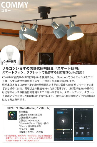 照明本体となるCOMMYは普通の照明器具ですがLED電球”Quito”がリモートでさまざまな操作に対応。